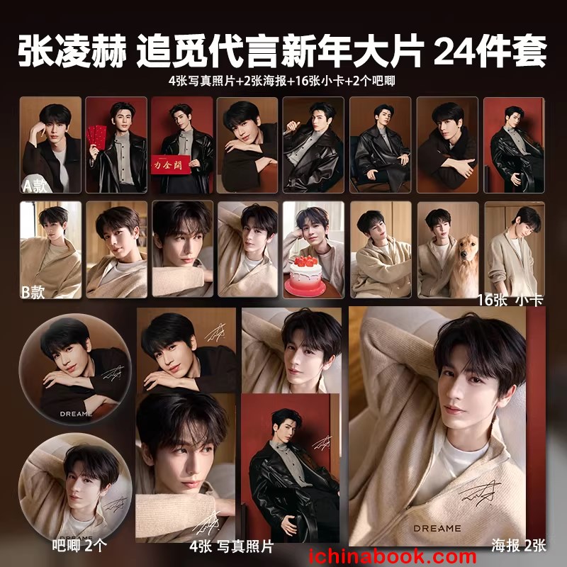 장릉혁굿즈세트[24](张凌赫)追觅代言 (카드AB+포스터+사진+배지)