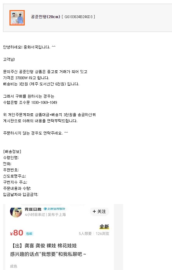 공준인형 입고문의드린사람입니다